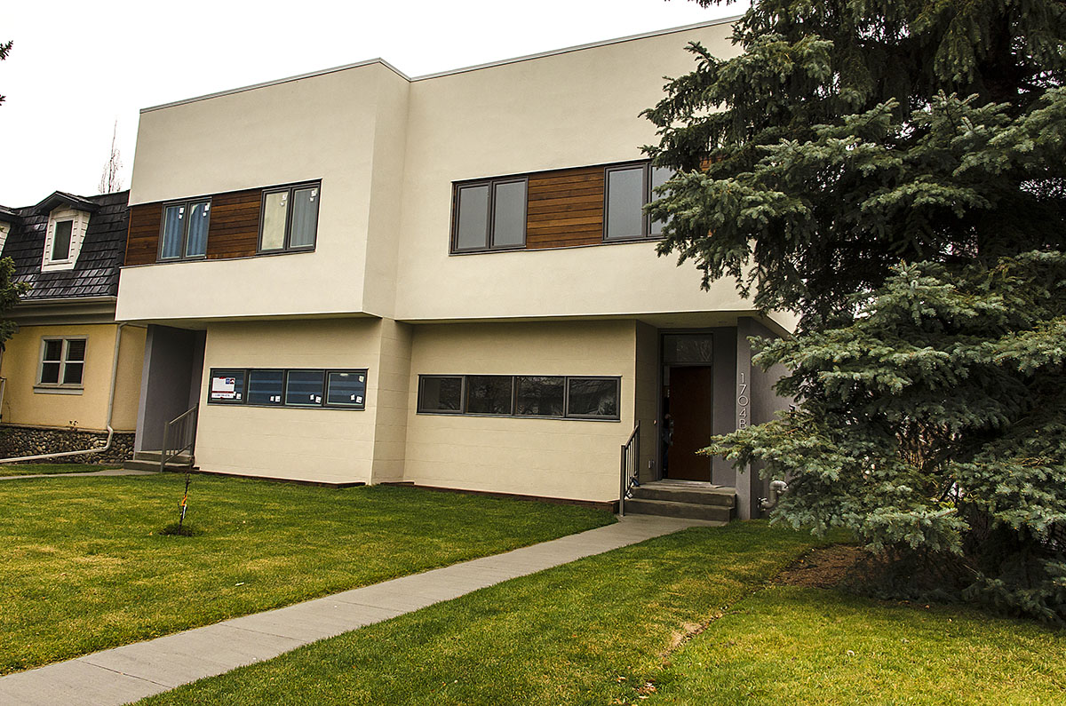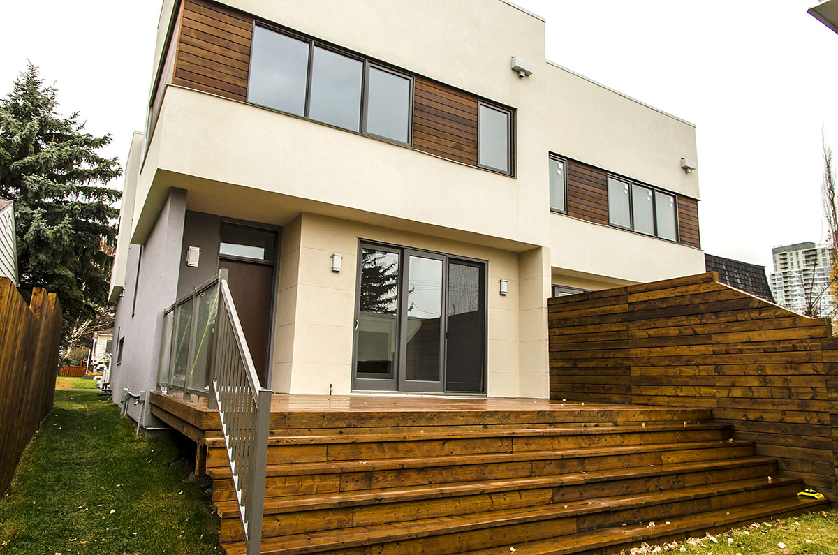 Izabela is a vibrant and contemporary semi-detached dwelling located at 1704A - 32nd Street S.W. Each parcel has an area of 3000 Sq/Ft with an elongated shape disposed from East to West. The back yard is slightly sloped ending with an oversized double garage accessed from the back lane.